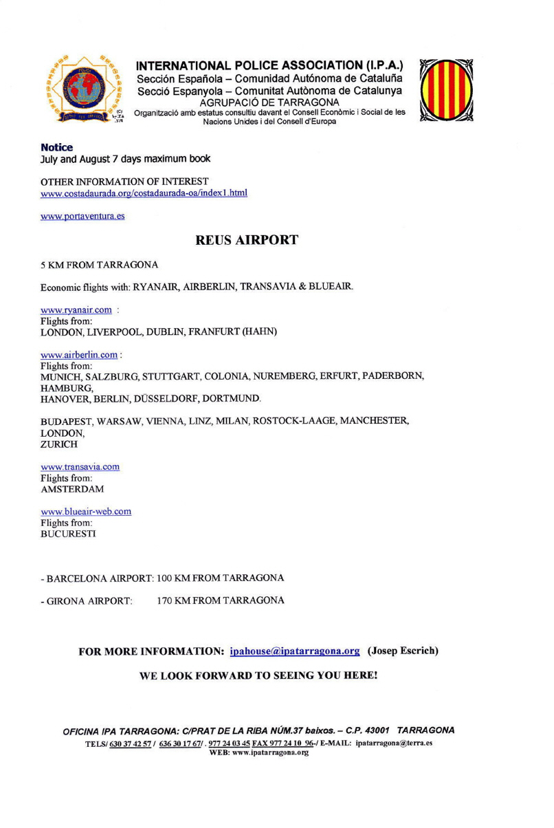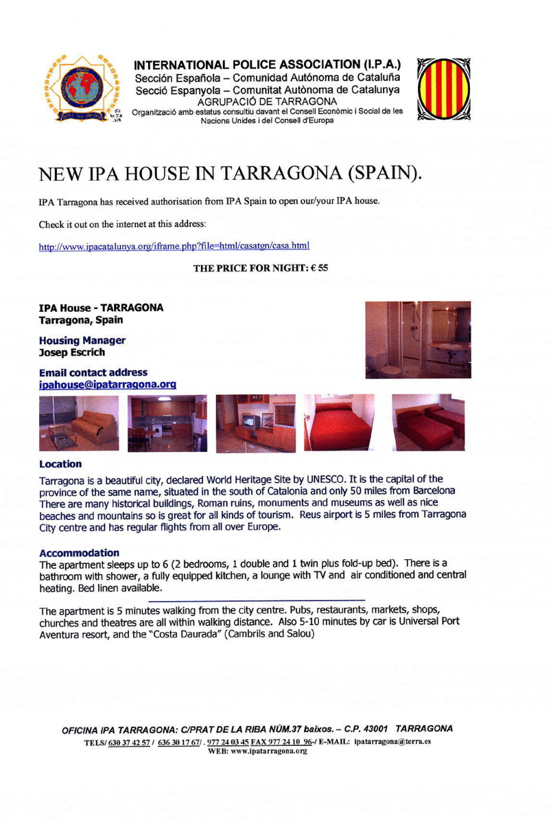 Ferienhaus der IPA-Verbindungsstelle TarragonaDer Sekretär der katalanischen IPA-Verbindungsstelle Tarragona übersandte uns folgende Infos:Bitte auf die Bilder klicken!