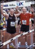 Dann, wir nahmen uns bei den erhobenen Händen, wollten ein schönes Erinnerungsphoto beim Zieldurchlauf und was geschah: beide Photografen wechselten den Film: Egal, Zieldurchlauf bei 4:48:48, gewartet, bis der neue Film im Kasten war und endlich das Photo!